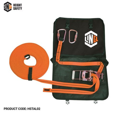 - The webbing temporary static line kit is a lightweight, 20m line, complete with ratchet tensioner for quick and easy installation.